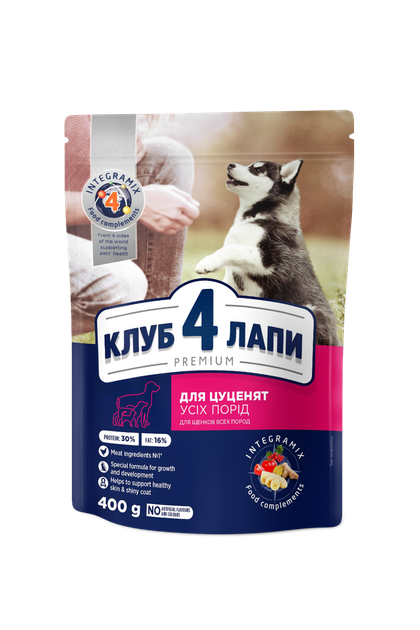 Сухий корм для цуценят з куркою 400 г CLUB 4 PAWS Клуб 4 Лапи