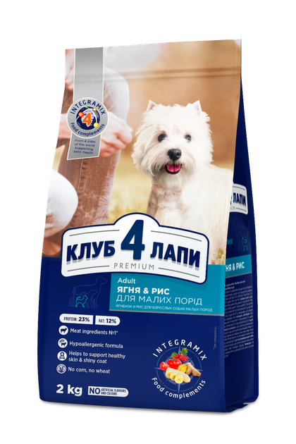 Сухий корм Ягня і рис для собак малих порід 2 кг CLUB 4 PAWS Клуб 4 Лапи