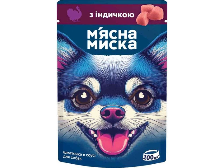 Корм для собак М'ЯСНА МИСКА Пауч 100г шматочки в соусі для собак з індичкою