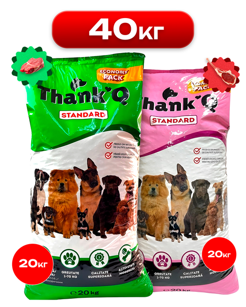 Сухий корм для собак усіх порід зі смаком яловичини та шинка 40КГ Thank'Q КОМПЛЕКТ