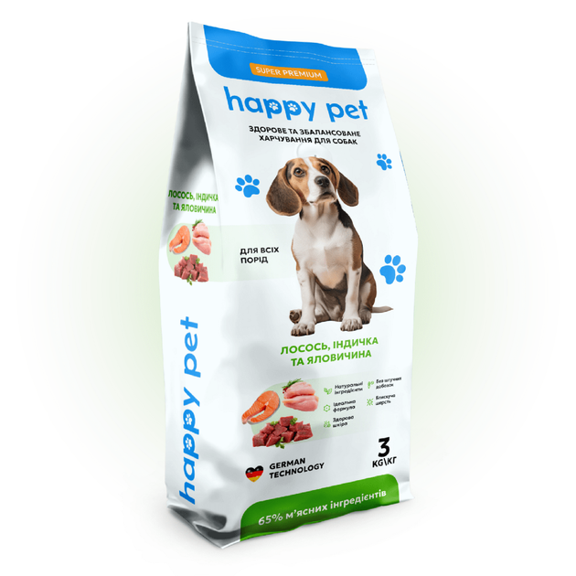 Сухий корм для собак середніх порід Happy Pet на основі 3-х видів м'яса 3 кг