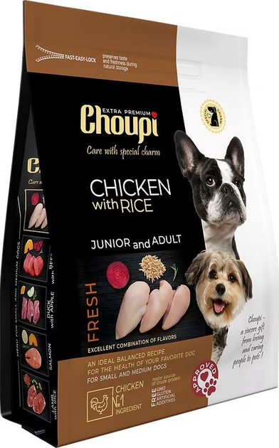 Cухий корм Choupi для молодих і дорослих собак малих та середніх порід, курка з рисом 1,6кг