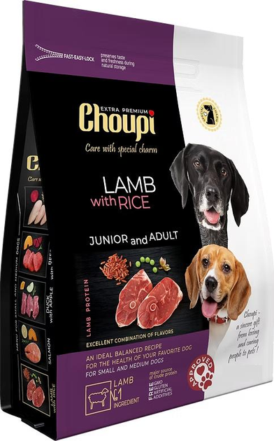 Cухий корм Choupi для молодих і дорослих собак малих та середніх порід, ягня з рисом 1.6кг