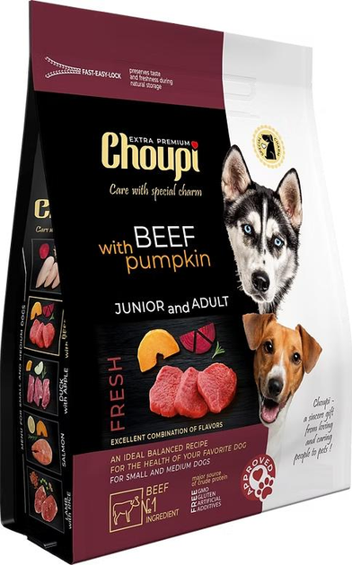 Cухий корм Choupi для молодих і дорослих собак малих та середніх порід, яловичина з гарбузом 1,6кг