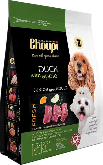 Cухий корм Choupi для молодих і дорослих собак малих та середніх порід, качка з яблуками 1,6кг