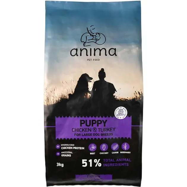 Сухий корм Anima для цуценят великих порід з куркою, індичкою та рисом 3кг