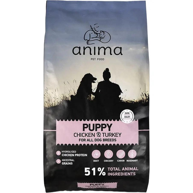 Сухий корм Anima для цуценят всіх порід з куркою, індичкою та рисом 14кг