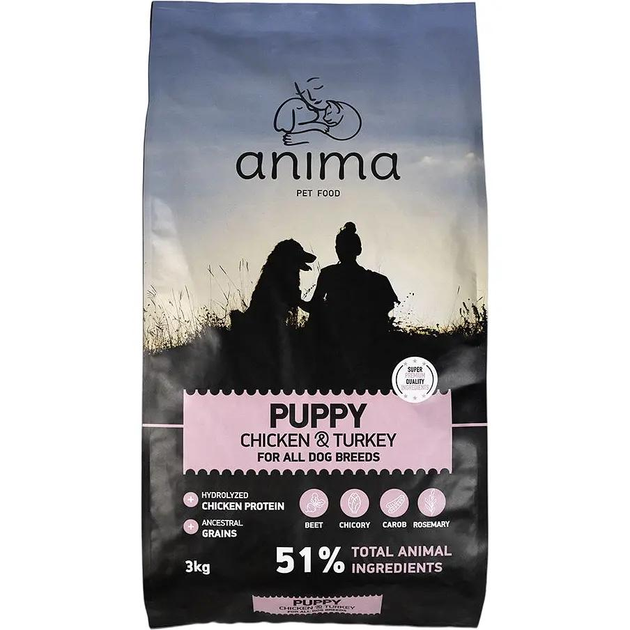 Сухий корм Anima для цуценят всіх порід з куркою, індичкою та рисом 3кг