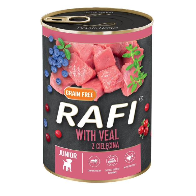Консерва для цуценят Dolina Noteci RAFI Junior паштет телятина, голубика та журавлина 400 г