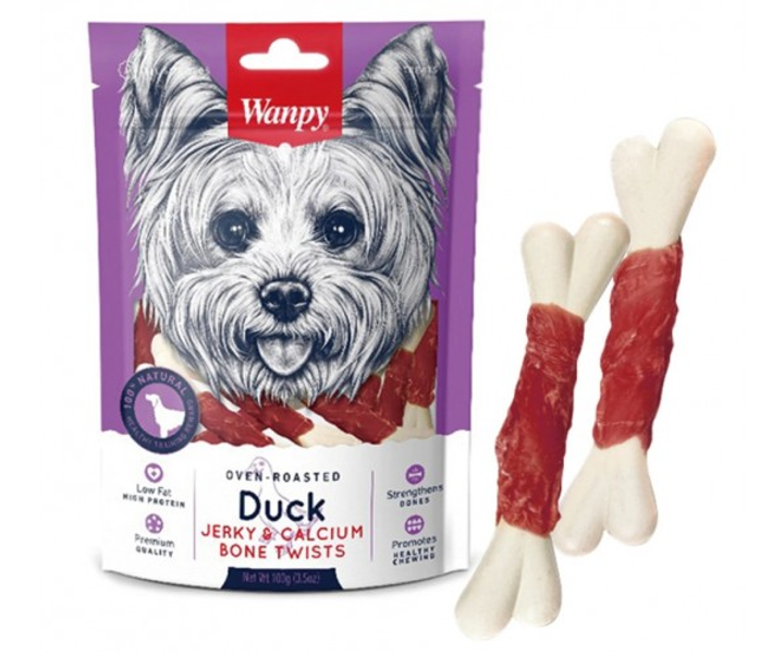 Ласощі для собак Wanpy кістка з в'яленою качкою і кальцієм, 100 г