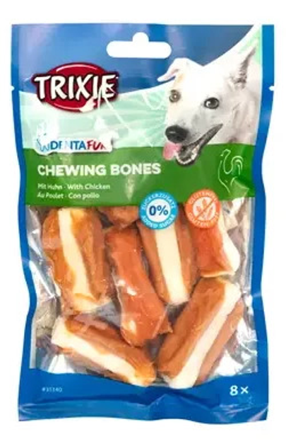 Ласощі для собак для дресування Trixie Кістка для чищення зубів з куркою Denta Fun 5 см 120 г (8 шт.)