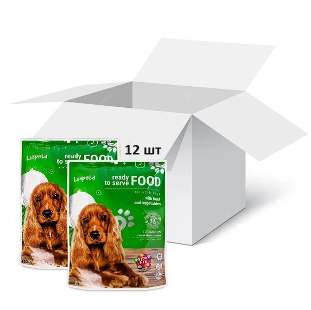 Вологий корм для собак Леопольд Готовий корм з яловичиною і овочами 500 г упаковка 12 шт
