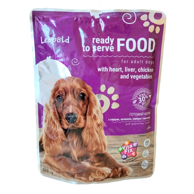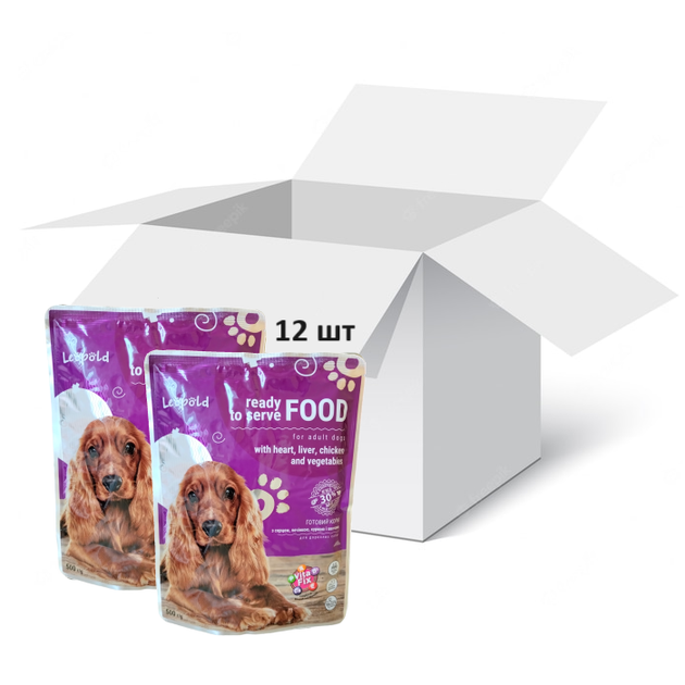 Вологий корм для собак Леопольд Готовий корм з серцем, печінкою, куркою і овочами 500 г упаковка 12 шт