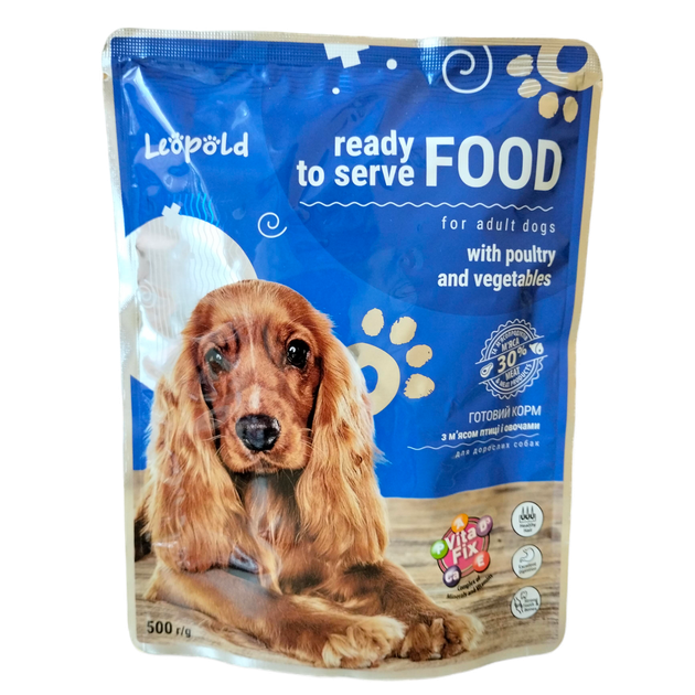 Вологий корм для собак Леопольд Готовий корм з м'ясом птиці і овочами 500 г