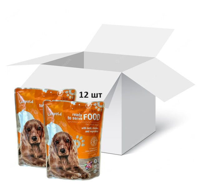 Вологий корм для собак Леопольд Готовий корм з ягням, куркою і овочами 500 г упаковка 12 шт