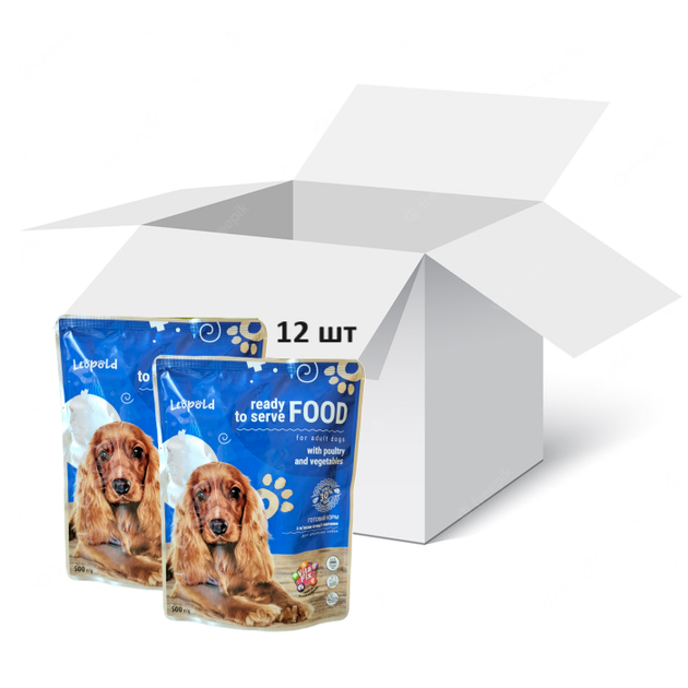 Вологий корм для собак Леопольд Готовий корм з м'ясом птиці і овочами 500 г упаковка 12 шт