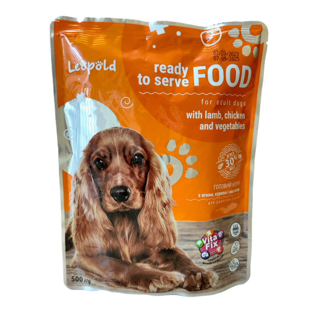 Вологий корм для собак Леопольд Готовий корм з ягням, куркою і овочами 500 г