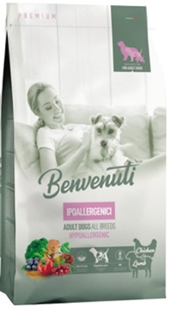 Сухий корм для дорослих собак усіх порід Benvenuti IPOALLERGENCI, гіпоалергений з ягням та куркою - 15 кг
