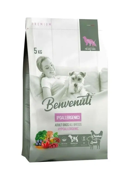 Сухий корм для дорослих собак усіх порід Benvenuti IPOALLERGENCI, гіпоалергений з ягням та куркою - 5 кг
