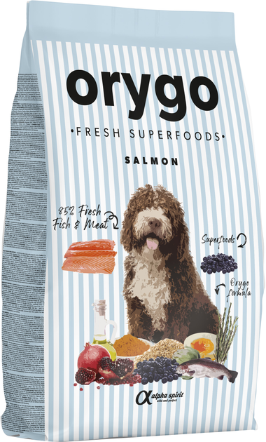 Напіввологий корм ORYGO Salmon 8кг, для дорослих собак усіх порід, з лососем та чорницею