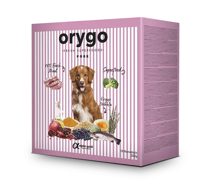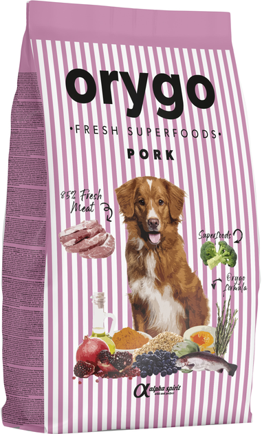 Напіввологий корм ORYGO Pork 3,6 кг, для дорослих собак усіх порід, зі свининою та броколі