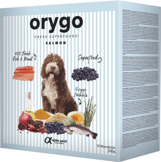 Напіввологий корм Orygo Salmon для дорослих собак з лососем та чорницею 3.6 кг 18 х 200 г (ORYGD030000946)