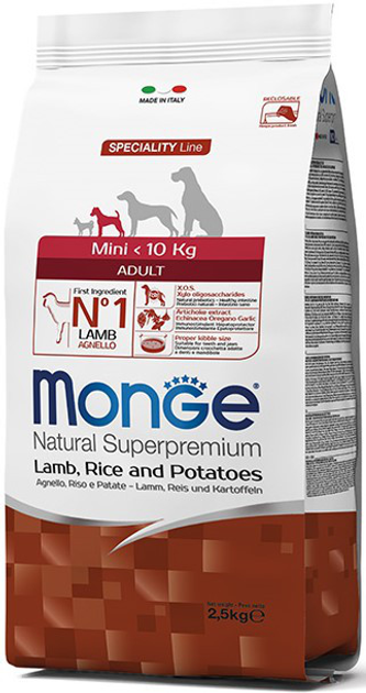 Корм для собак Monge Mini Adult з ягням 2,5 кг