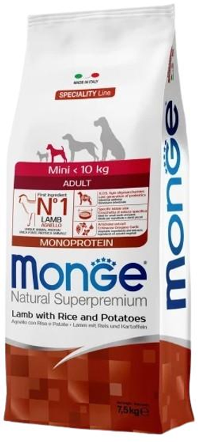 Корм для собак Monge Mini Adult з ягням,рисом та картоплею 7,5 кг