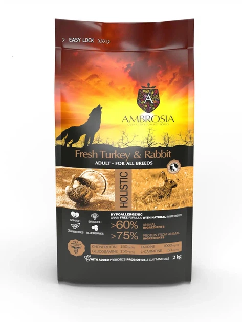 Беззерновий сухий корм Ambrosia Grain Free Dog Adult Fresh Turkey & Rabbit для дорослих собак усіх порід зі свіжою індичкою