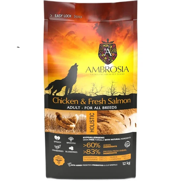 Беззерновий сухий корм Ambrosia Grain Free Dog Adult Chicken & Fresh Salmon для дорослих собак усіх порід з куркою та свіжим
