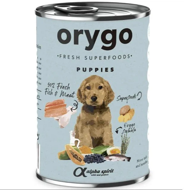 Orygo Wet Puppies Повнораційний корм з лососем та бататом для цуценят всіх порід, 400 гр (8436586312299)