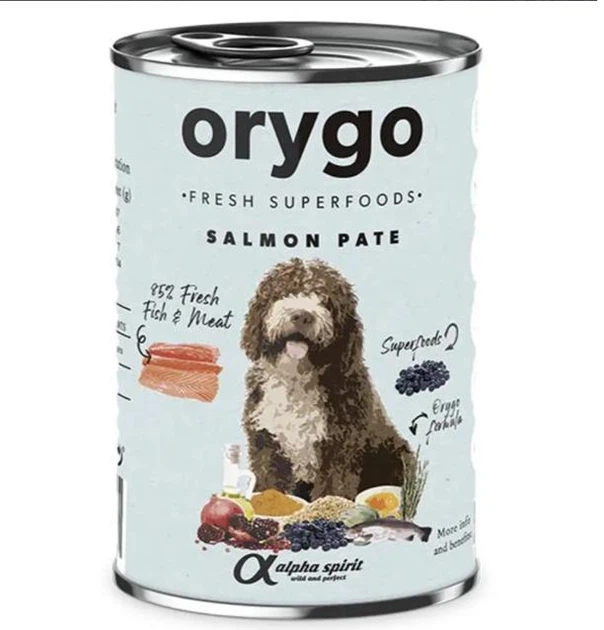 Orygo Wet Salmon повнораційний вологий корм з лососем та чорницею для дорослих собак, 400 г (8436586312282)