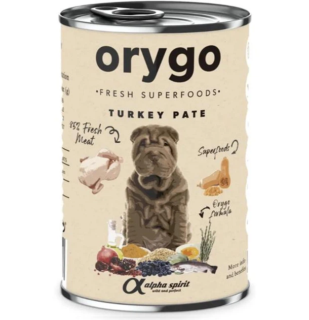 Orygo Wet Turkey Повнораційний вологий корм з індичкою та тыквою для дорослих собак, 400 г (8436586312282)