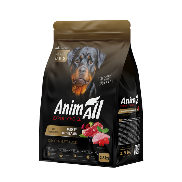 Повнораціонний сухий корм для собак великих порід AnimAll зі свіжою індичкою та ягням, 2.5 кг
