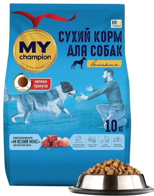 Повнораціонний сухий корм My Champion для великих собак "М'ясний мікс" 10 кг (4820224503967)