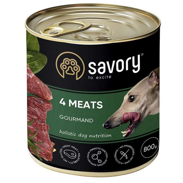 Savory Dog Gourmand 4 meats - Вологий корм з чотирма видами м'яса для дорослих собак гурманів всіх порід, 800 г