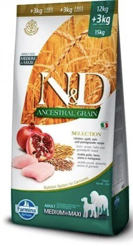Фарміна дог сух N&D Low Grain CHICKEN & POMEGRANATE ADULT 15 кг для собак середніх та великих порід з куркою та гранатом