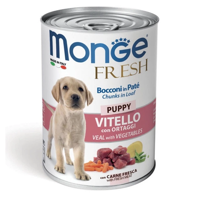Консервований корм для цуценят з телятиною та овочами Monge Fresh Puppy Veal & Vegetables Cans 400 г