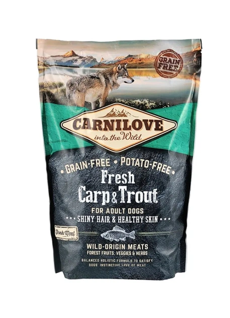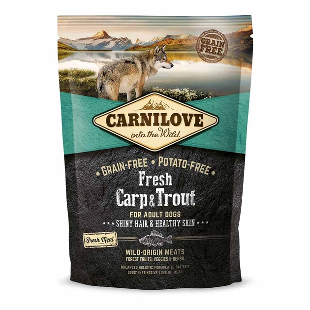 Беззерновий корм для собак усіх порід зі свіжим м'ясом коропа, форелі та лосося Carnilove Fresh Carp & Trout 1,5 кг