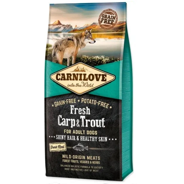 Сухий корм для дорослих собак Carnilove Fresh Carp & Trout Shiny Hair & Healthy Skin з коропом і фореллю 12 кг