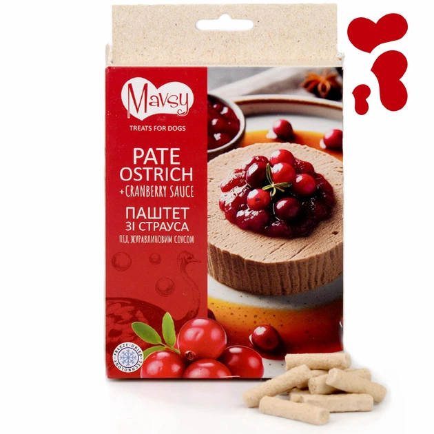 Ласощі для собак від 3-х місяців Mavsy Freeze dried PATE OSTRICH WITH CRANBERRY SAUCE паштет зі страуса під журавлиним соусо