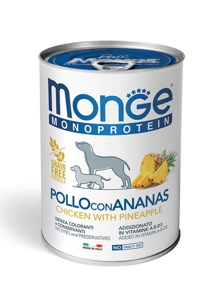 Вологий корм Monge Dog Wet Fruit Monoprotein для дорослих собак, з куркою та ананасами, 400 г х 6 шт