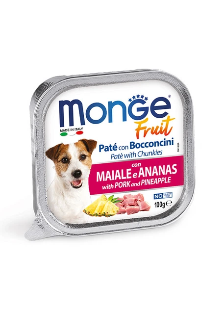 Вологий корм Monge Dog Wet Fruit для дорослих собак, зі свининою та ананасом, 100 г