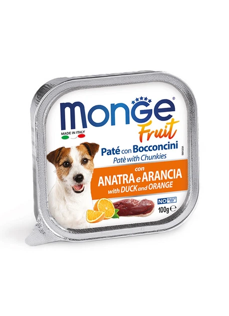 Вологий корм Monge Dog Wet Fruit для дорослих собак, з качкою та апельсином, 100 г