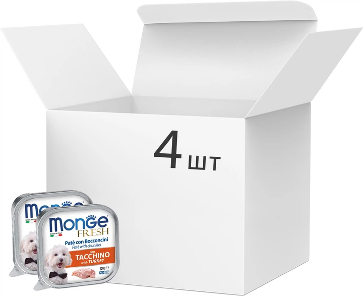 Упаковка вологого корму для собак Monge Dog Wet FRESH індичка 0.1 кг x 4 шт (1826000000035)