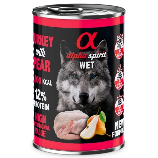 Консервований корм Alpha Spirit Dog Turkey with Pear Повнораціонний вологий корм з індичкою та грушами для дорослих собак 40
