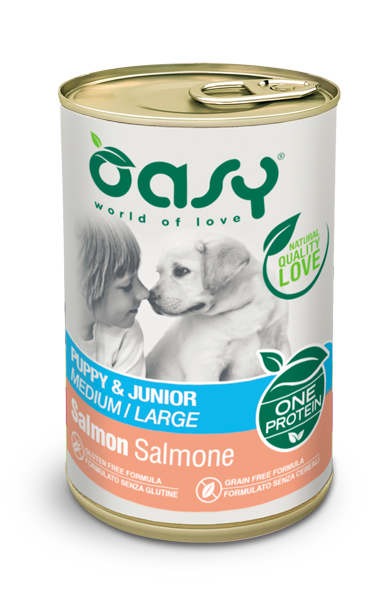 Консервований корм OASY OAP Puppy & Junior Medium/Large Вологий корм з лососем для цуценят середніх та великих порід собак в
