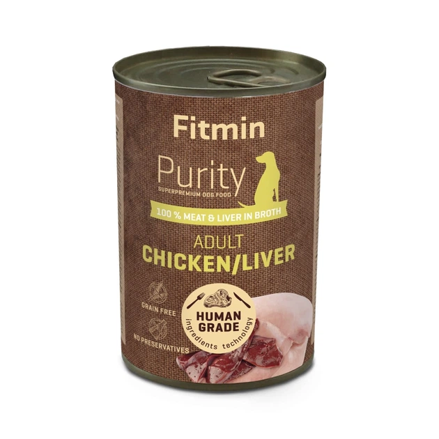 Консервований корм Fitmin dog Purity tin chicken with liver М'ясна консерва для дорослих собак, шматочки курятини з печінкою