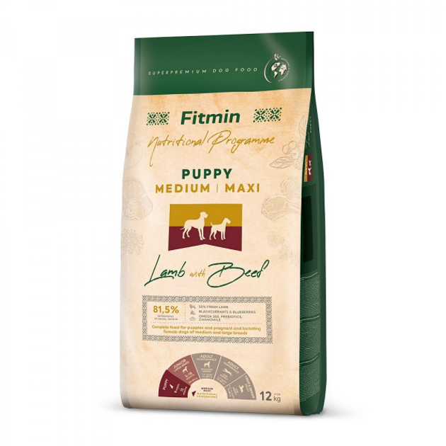 Cухий корм Fitmin Dog MEDIUM/MAXI Puppy для цуценят середніх та великих порід з бараниною і яловичиною 12 кг