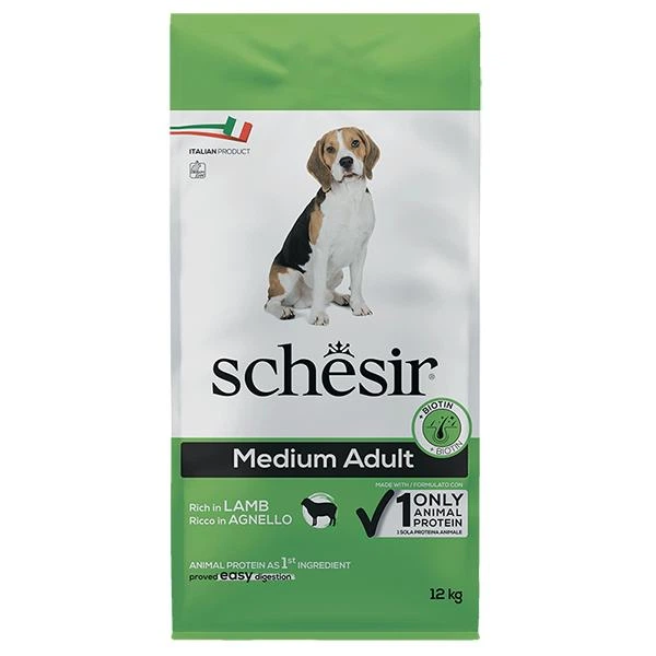 Сухий монопротеїновий корм Schesir Dog Medium Adult Lamb Шезір для дорослих собак середніх порід з ягням 12 кг (ШСВСЯ12)